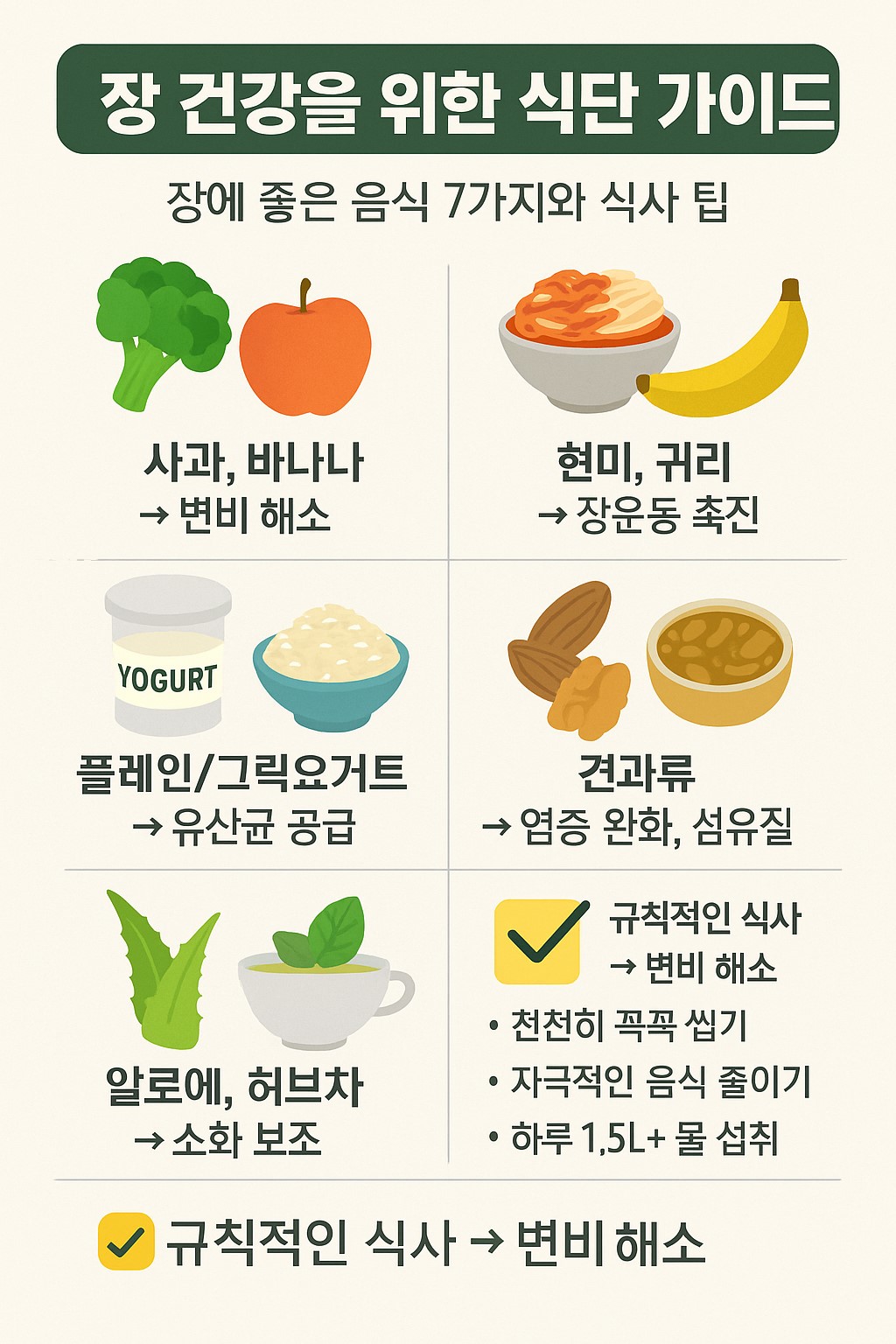장 건강을 위한 식단 가이드 – 장에 좋은 음식 7가지와 식사 팁