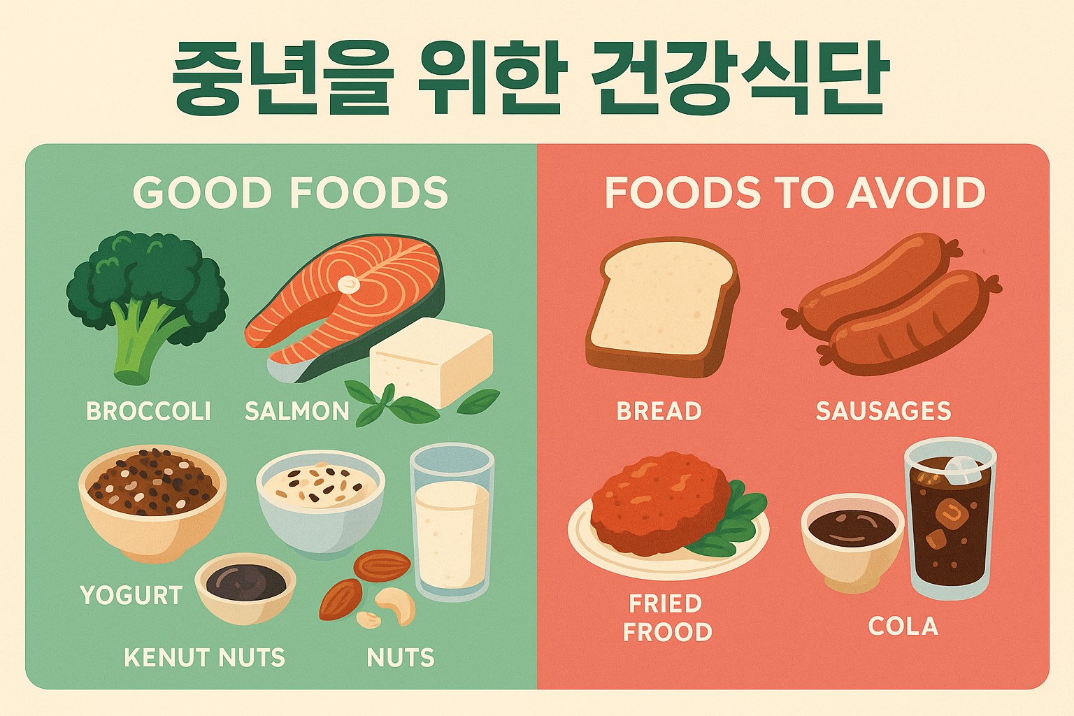중년을 위한 건강식단 – 40대 이상에게 좋은 음식 & 피해야 할 식품