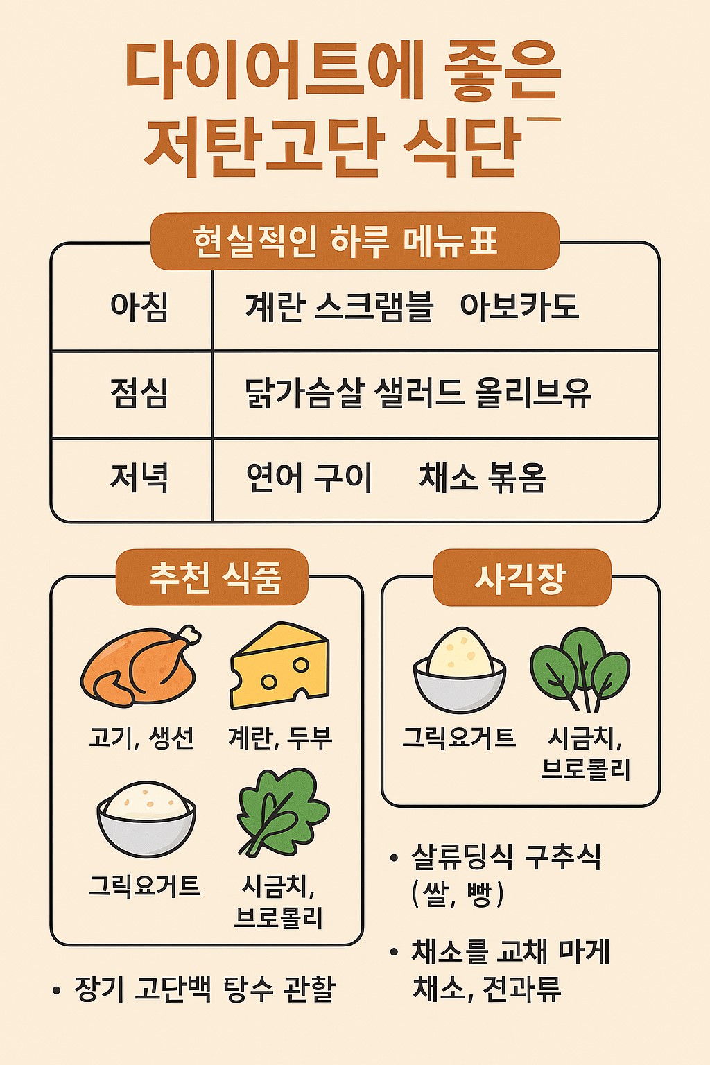 다이어트에 좋은 저탄고단 식단 추천 – 현실적인 하루 메뉴표 공개